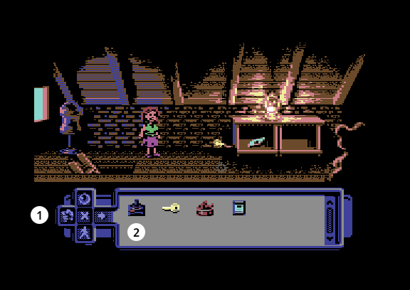 To move Caren around the game world, move the cursor using the joystick and press Fire. If the cursor is over a position Caren can reach, she will begin moving towards it.