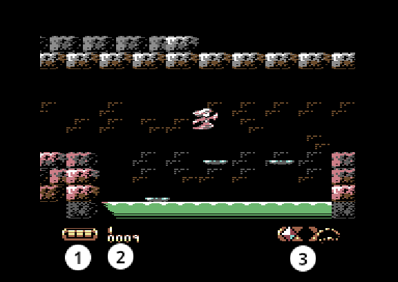 The game begins on the loading screen for the initial level, along with a brief overview of the story. Press the Fire button on the joystick to skip the introduction and begin the game.