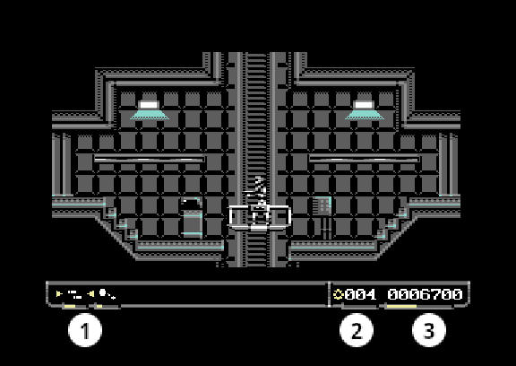 Press and hold the Fire button on the joystick to fire the rifle using the selected ammo type. The rifle can be fired in 8 directions by moving the joystick while holding fire - if the character was moving when the Fire button is pressed, movement will continue. Firing down while crouching is not possible - you can either fire diagonally down, or stand up first.