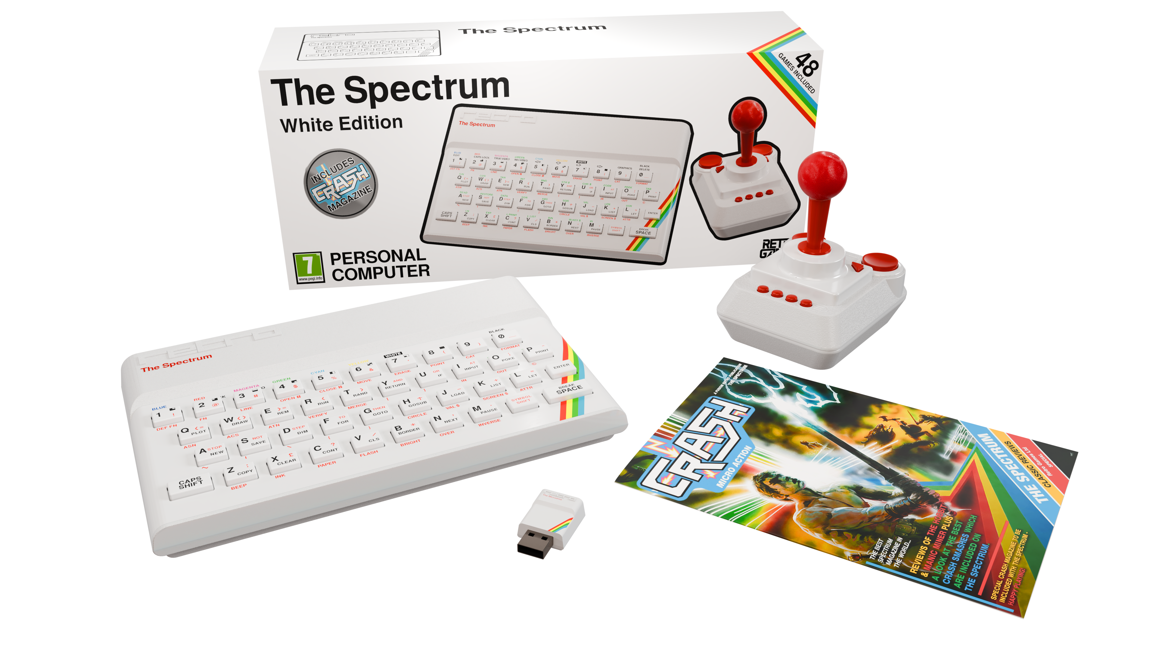 A striking all-white tribute to the iconic one-millionth Spectrum. Includes The Spectrum, THEJOYSTICK, The Microdrive USB Stick, and companion CRASH magazine.